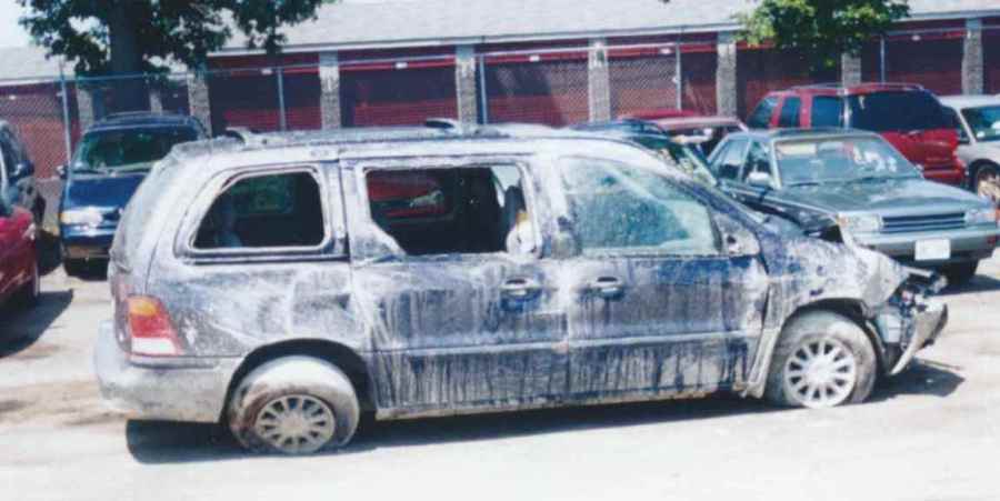David went to take photos of the minivan later. He agreed that while the entire cabin was filled with glass and mud, where Sarah sat was completely glass and mud free. There was not even a drop around her at all.